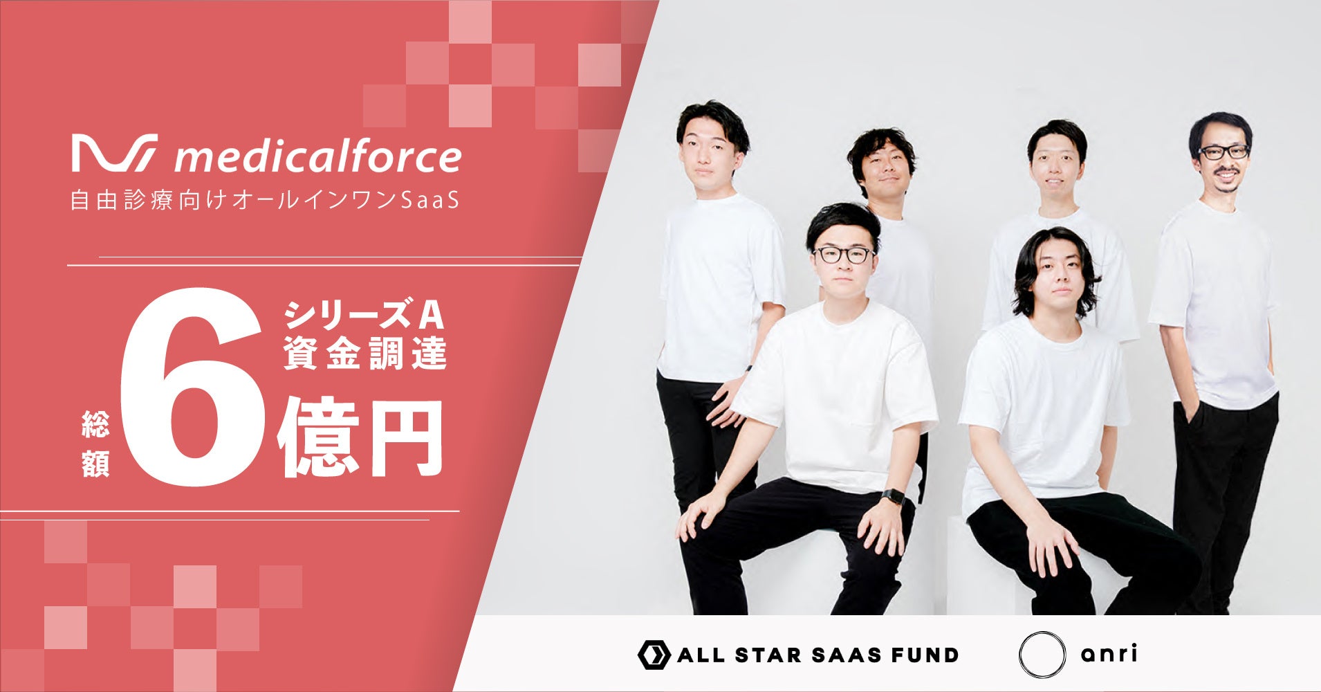 自由診療向けSaaSを提供する株式会社メディカルフォース(本社:東京都渋⾕区、代表取締役CEO:⼤嶋翼)は、ALL STAR SAAS FUND、ANRIを引受先としたシリーズAラウンドにおいて総額6億円を調達しました。