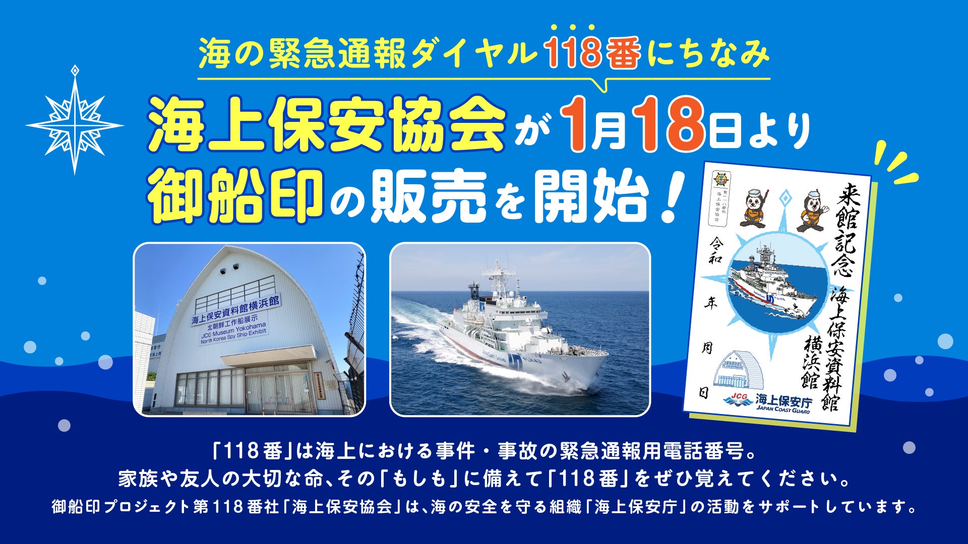 海の緊急通報ダイヤル「118番」にちなみ、1月18日より海上保安協会が御船印の販売を開始!