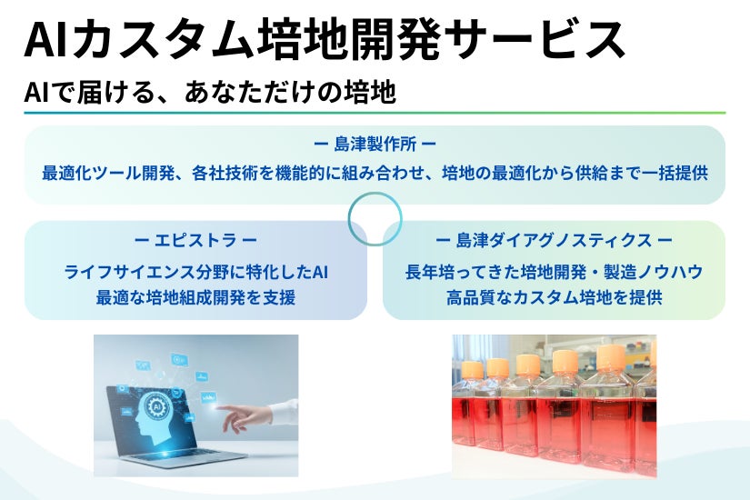 エピストラ、島津製作所・島津ダイアグノスティクスと共同で「AIカスタム培地開発サービス」を提供開始