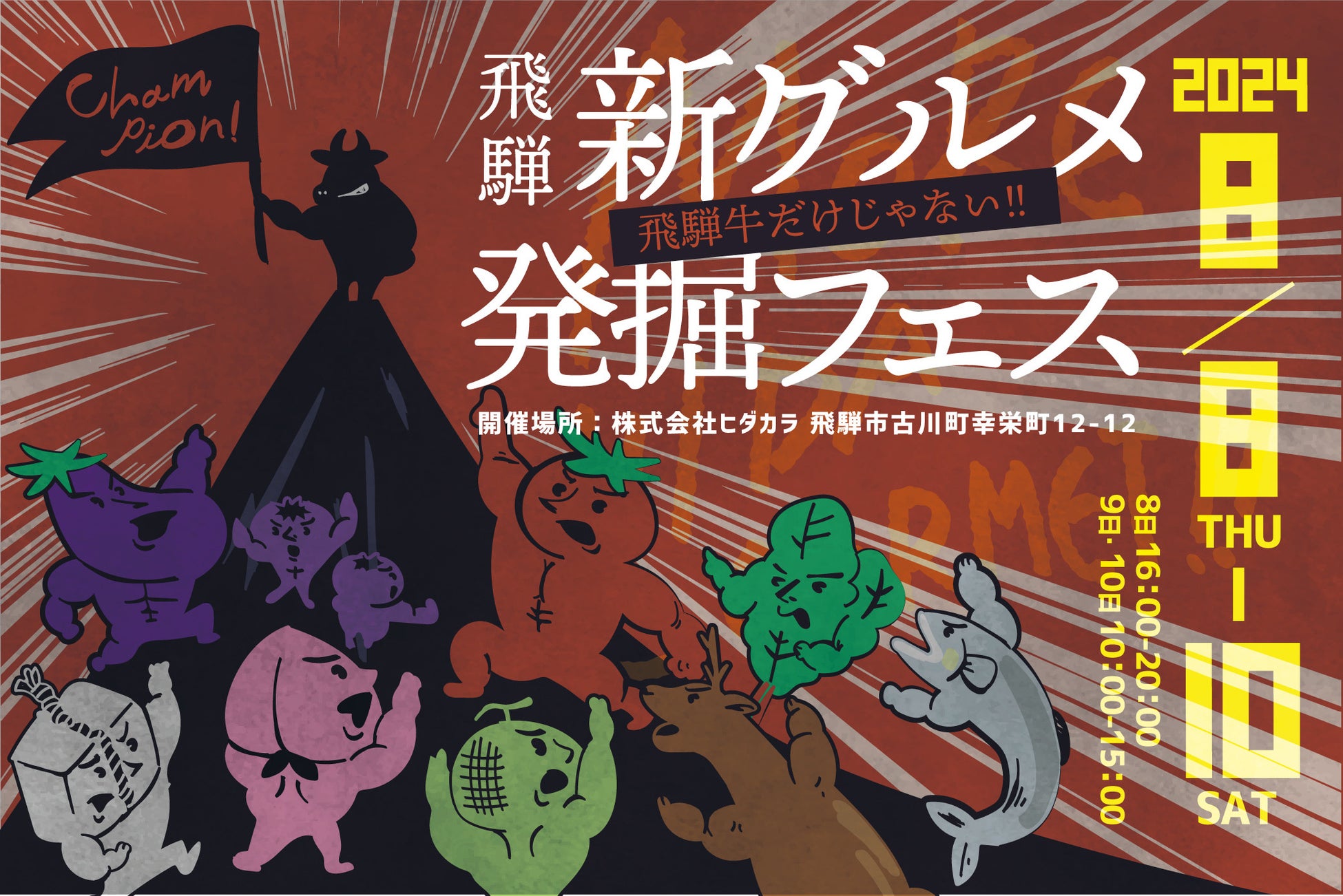 株式会社ヒダカラ(岐阜県飛騨市、以下当社)は、8月8日(木)〜8月10日(土)に「飛騨牛だけじゃない!飛騨・新グルメ発掘フェス」を開催いたします。
