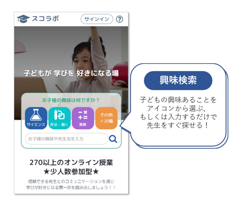 ~子どもの好奇心に合う先生とのマッチング、多忙な子どものスケジュールに寄り添う調整機能~