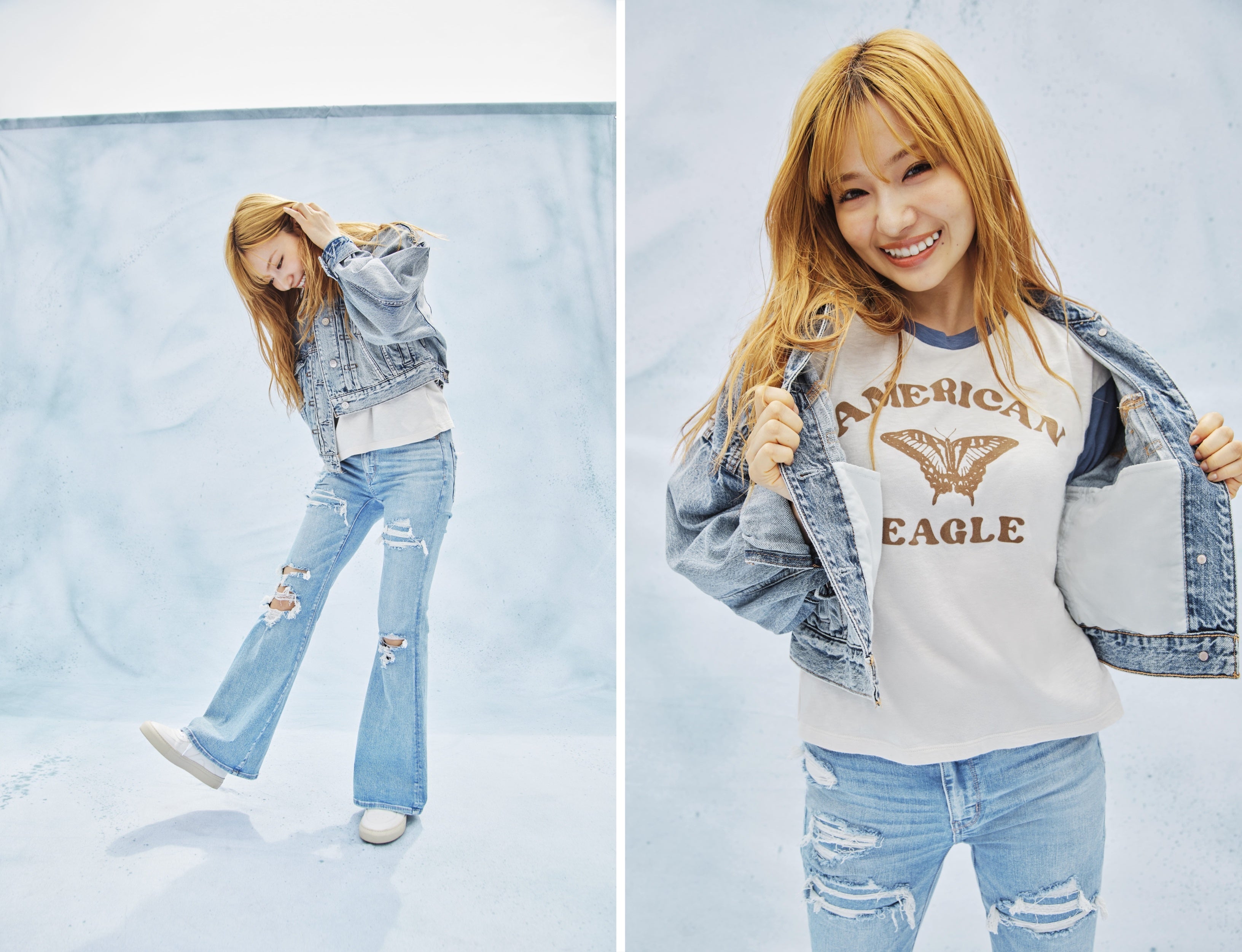 最新のフレアジーンズは、村瀬紗英がライブに行く時のお気に入り。フレア ジーンズは日常のワードローブにヴィンテージの魅力を加え、ストレート フィットとハイウエストのディテールで90年代の懐かしさを表現。涼しくなったら、お気に入りのAEジーンズにデニム ジャケットを合わせて、自分らしいスタイルに。