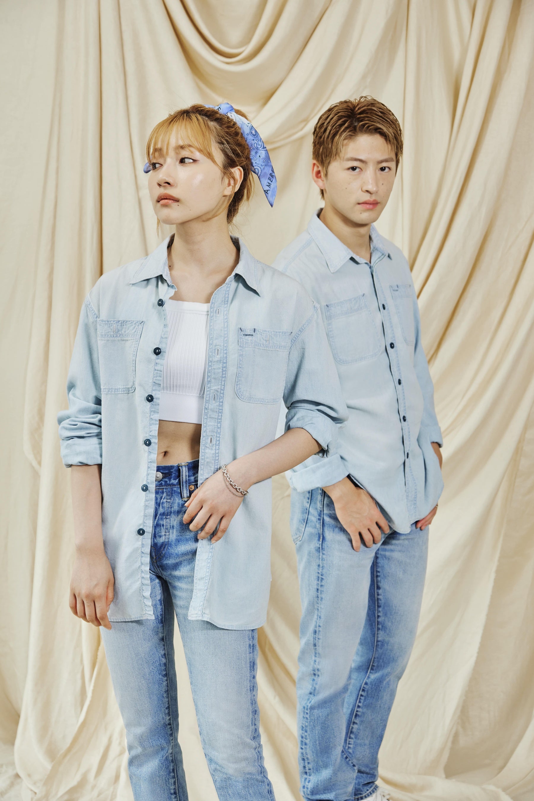 ウィメンズウェアでは、デニム シャツのセレクションをご用意しました。どのアイテムも真のデニム ライフスタイルを現代的に解釈したものです。自宅での「自分時間」でも、屋外での日光浴でも、同系色のデニムシャツとボトムスを合わせれば、エフォートレスなトータルルックが完成します。ヴィンテージとレトロな文化を愛する石川恋は、アクティブなライフスタイルにぴったりのお気に入りのスケーター ジーンズを選びました。