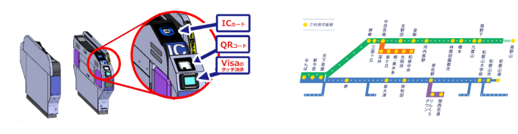 | 2020年12月24日 | 南海電鉄の改札機で 「Visaのタッチ決済」、「QRコード」利用の実証実験を実施 | https://www.nankai.co.jp/library/company/news/pdf/201224.pdf |