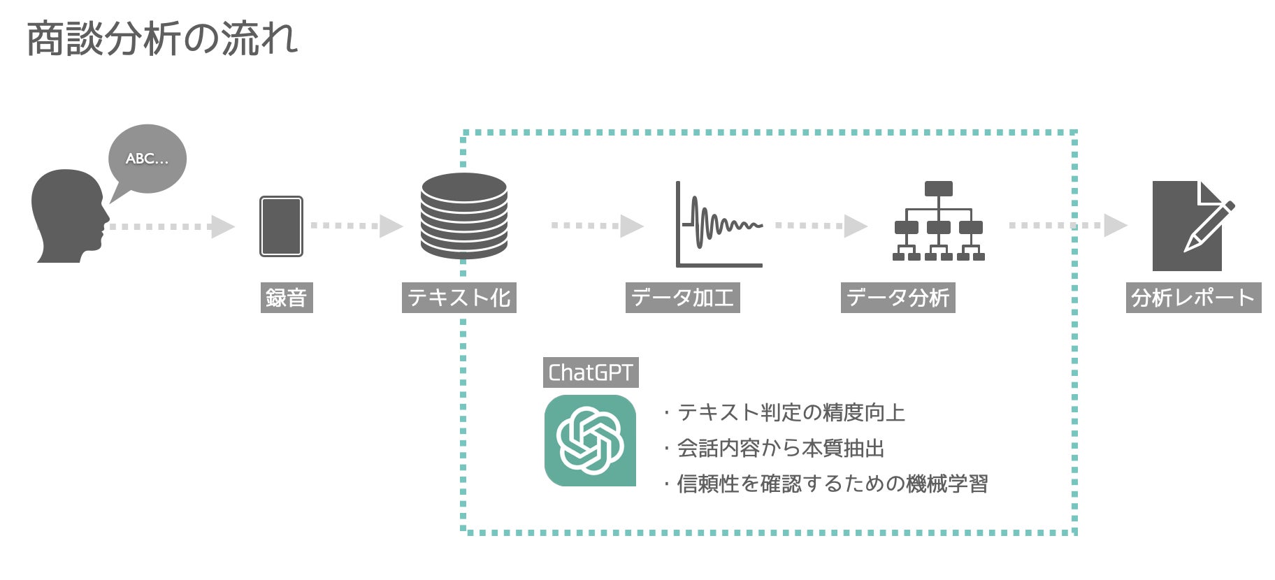 当社は創業当初より、様々な企業の解約データや会話データを学習しており、その学習モデルを使い会話の分析や知見をこのサービスに活かしております。文章単位での感情分析も可能にしており、商談内のストレスや冷静度なども数値化して分析可能です。ChatGPTとの連携も行なっており精度と効率化が著しく向上しております。