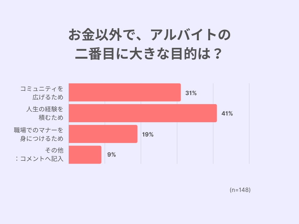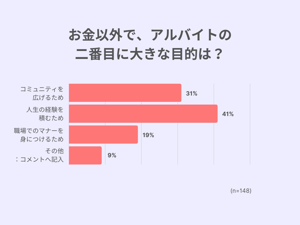 ・お金以外で、アルバイトの二番目に大きな目的は?