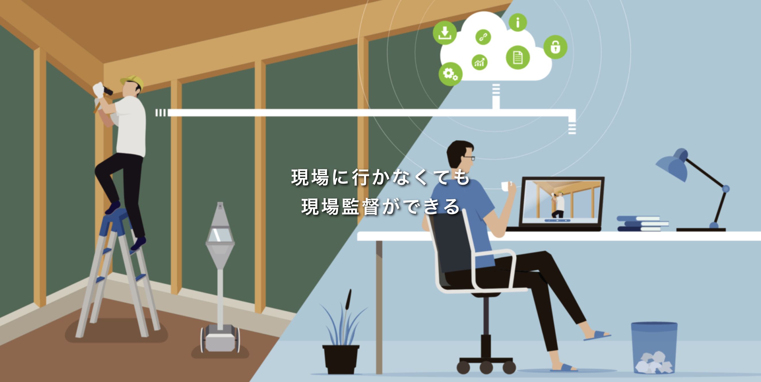建設に関わる全ての人は、現場管理のメイン業務である進捗管理・品質管理・情報管理・安全管理をリモートで実施可能。VR空間の施主共有やSNSやWEB公開機能など、現場管理を強みとしたCS向上&マーケティングへの活用も期待できます。