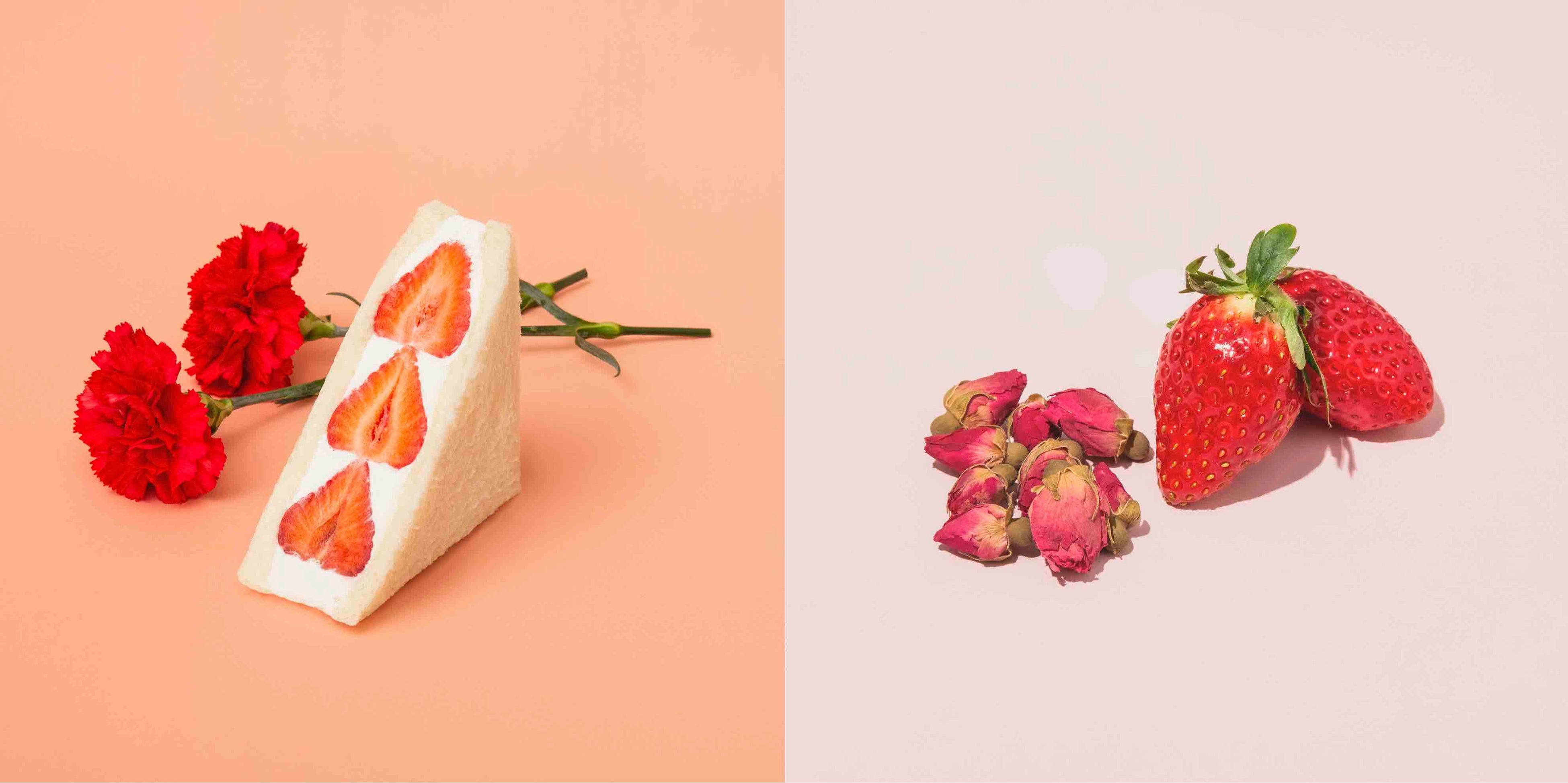 -ヴィーガンフルーツサンド専門店「fruits and season」が一輪のカーネーションを添えた、「ローズストロベリー」のフレーバーを加えたギフトセットを販売-