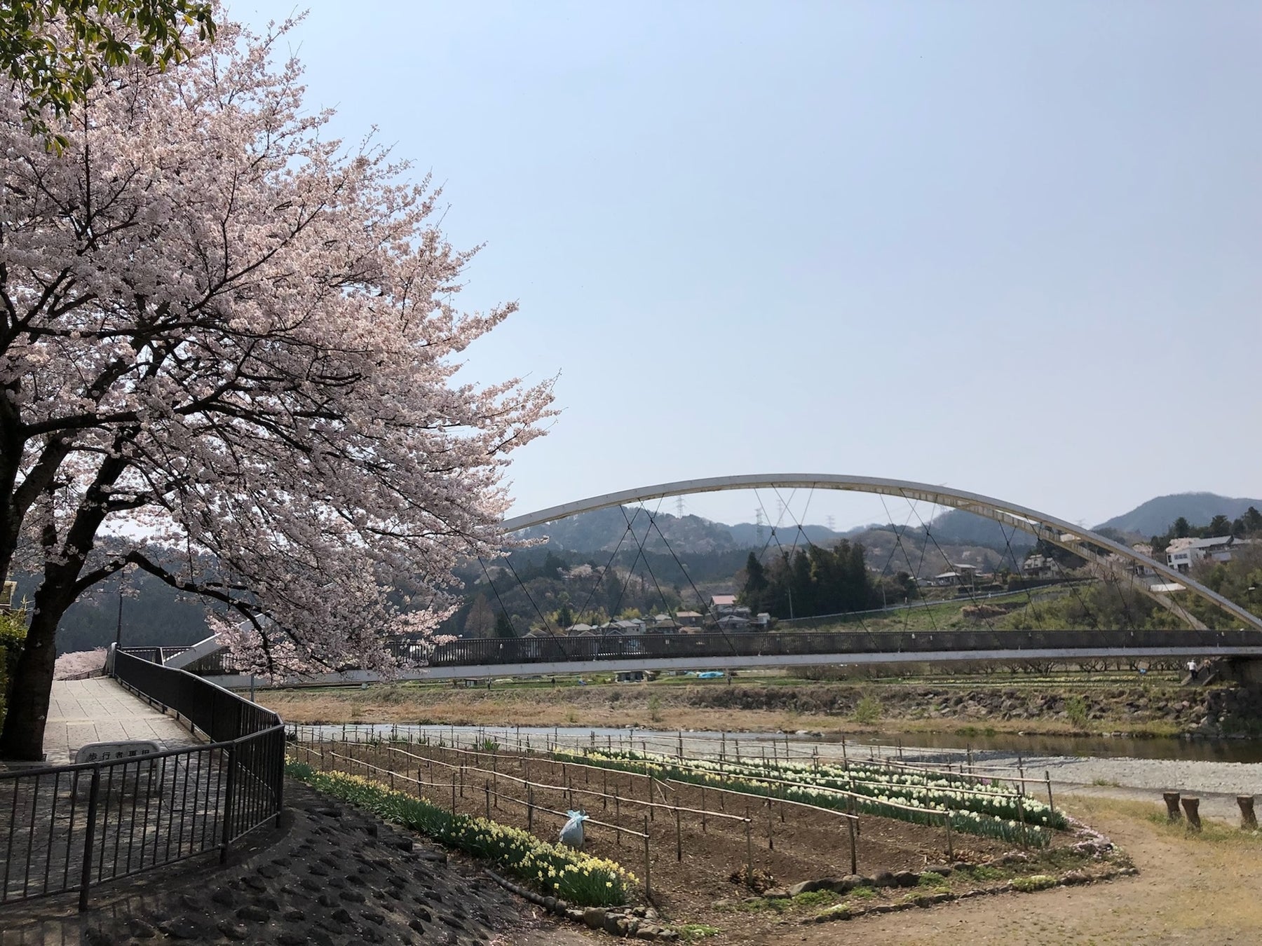 橋の周囲の桜はもちろん、橋から上流側の風景が最高です。
