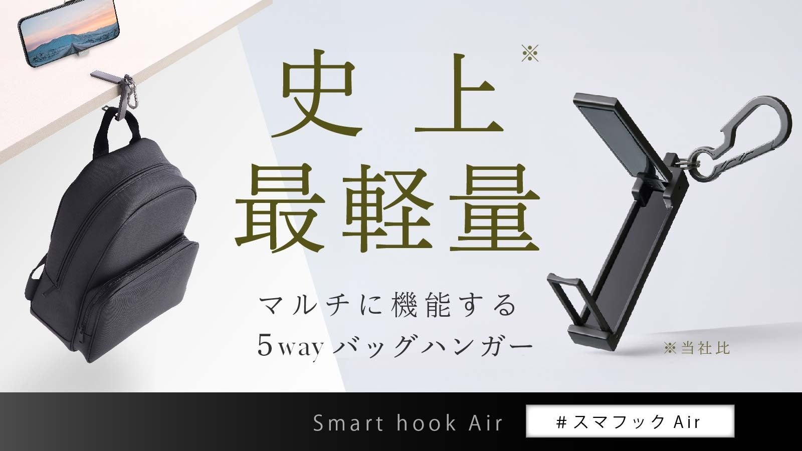 【史上最軽量】Makuakeにて予約1300万円突破!5wayバッグハンガー「スマフックAir」
