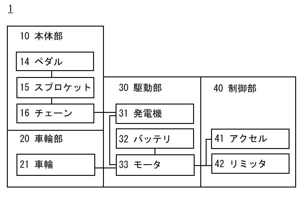 ・ペダリング ペダリングをすることにより、発電した電力をモーターに送り、駆動をします。ペダル回転数が低い場合や坂道などは発電だけでは駆動することができない場合がありますが、その場合はバッテリーから不足分の電力を供給することにより加速を行います。