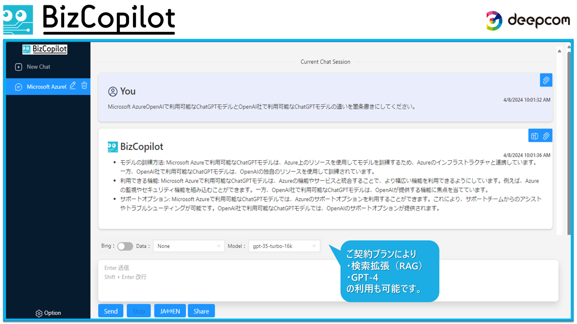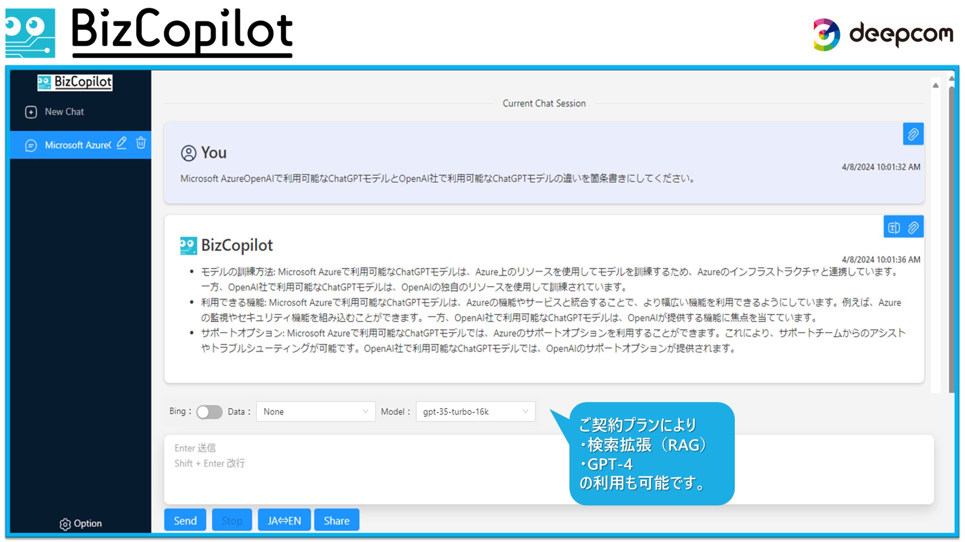 安全に社内利用できるChatGPTサービスとして、「BizCopilot」を立ち上げました。