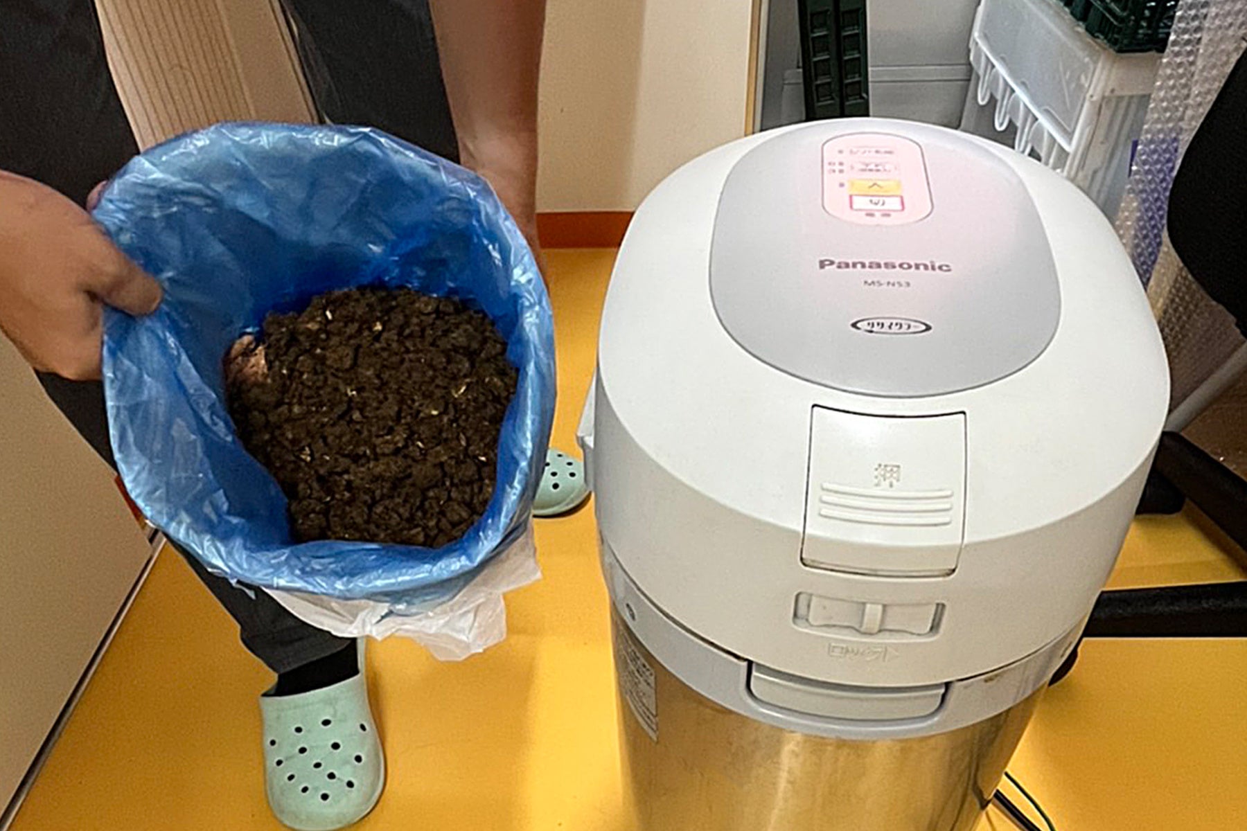 子ども達が残した給食やおやつの残飯、調理時に発生する野菜や果物の皮を生ごみ処理機にかけ、肥料として再生させます。食べ残しの量にもよりますが、多い時で残飯の3割以上が肥料として再利用されます。