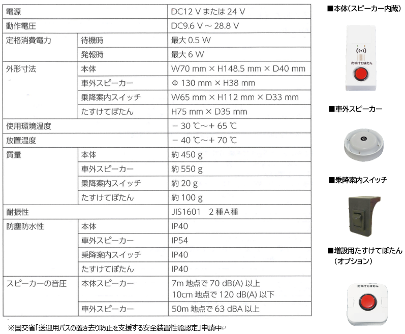 ※国交省「送迎用バスの置き去り防止を支援する安全装置性能認定」申請中