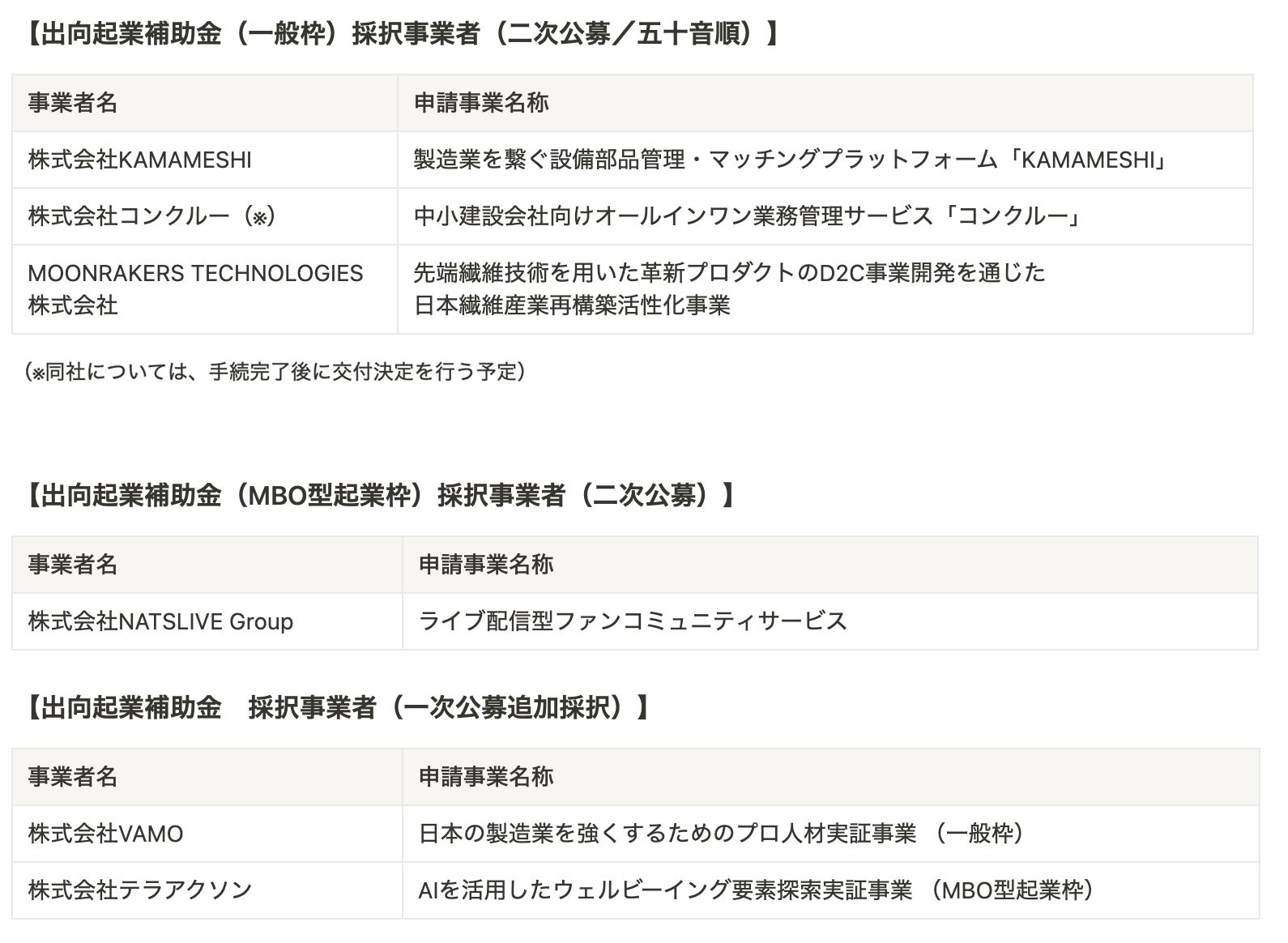 ~大企業等に所属する人材が、自社の通常業務を離れて新規事業創造に挑戦する事業を採択~