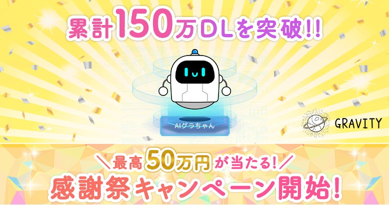 ミレニアル世代に大人気! 共感で繋がるSNS 「GRAVITY」、累計ダウンロード数150万突破!抽選で1名に最大50万円分のAmazonギフト券が当たる!感謝祭キャンペーンを開始。