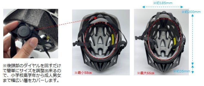 ※フリーサイズ(約58~66㎝。ワンサイズでも調整ダイヤルにより幅広く対応)