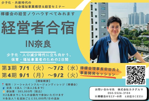 【株式会社カタグルマ 主催/講師・協力:社会福祉法人 檸檬会】限定6法人!!『【構想と戦略を、持ち帰る2日間】保育事業者のための経営者合宿in奈良 ー次の10年をつくる“拡大戦略”と“設計図”ー』