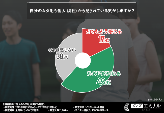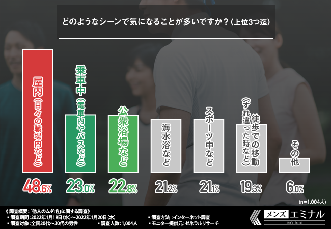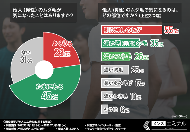 そこで今回、メンズ医療脱毛クリニック『メンズエミナル』(https://mens-eminal.jp/)は、全国20代~30代の男性を対象に、「他人のムダ毛」に関する調査を実施しました。