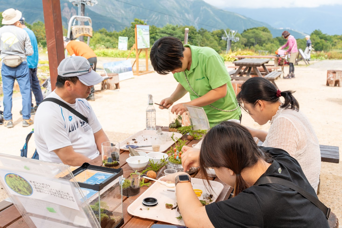 より魅力的なコンテンツを提供するため、商品開発やイベント実施などにも務めました。スキー場営業がGWに終了してから6月には早期開園をし、ビジターセンターにて牧野富太郎展を開催、夏にかけて草木染イベントや苔テラリウムワークショップを実施しました。