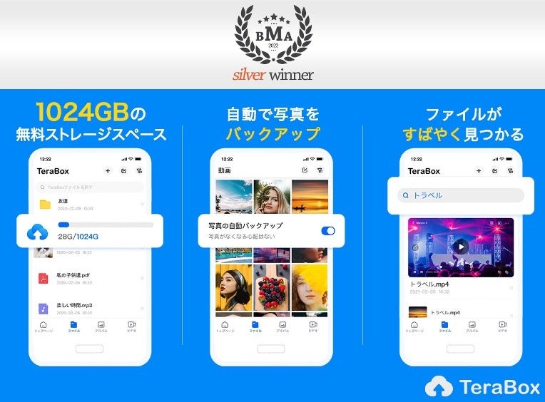 1TBが無料で使える!クラウドストレージサービス「TeraBox」、「Best Mobile App Awards」(Best New Mobile App部門)にて銀賞受賞!