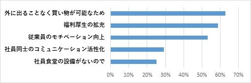 オフィスコンビニが職場に導入されている人は、全体の約24%。導入関与者に、選んだ理由を聞くと、1位は「手軽にお菓子・ドリンクなどを購入できる」ですが、2位以下は「設置・導入費用が無料・安い」「設置スペースが狭くても大丈夫」「電子マネーやキャッシュレス決済に対応」と続きました。社内で買い物ができる利便性、社員食堂の設備がない代わりの福利厚生として検討する企業がある一方で、設置可能スペースが少ない、現金回収の対応が難しいなどの課題も浮き彫りに。キャッシュレス決済の導入が進めば、より導入企業の増加にもつながりそうです。