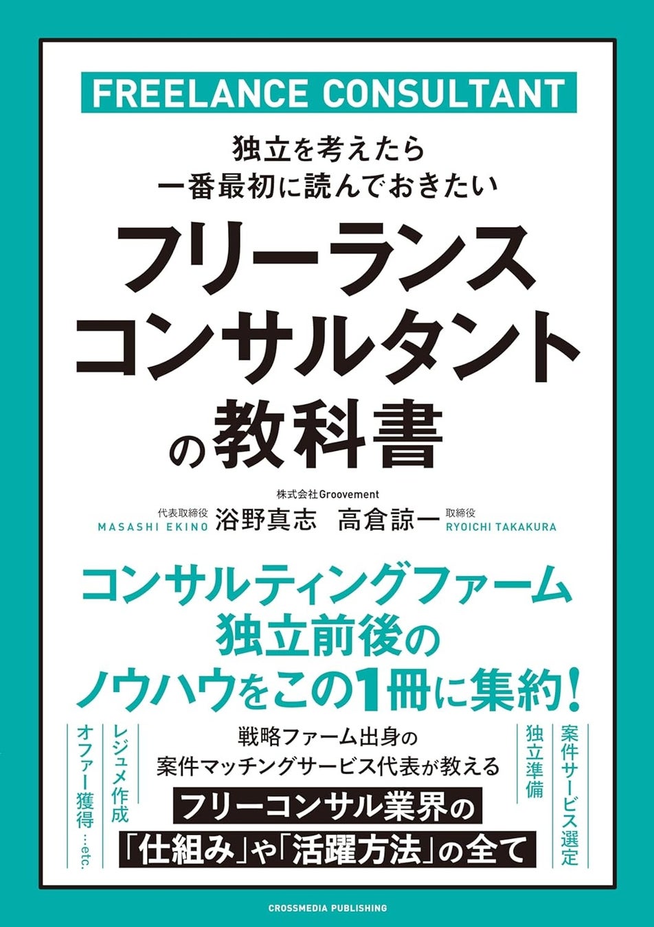 新たな挑戦をするプロフェッショナルを支援する株式会社Groovement(本社:東京都渋谷区、代表取締役:浴野真志)は2023年12月1日(金)に書籍「フリーランスコンサルタントの教科書」を株式会社クロスメディア・パブリッシングより発売いたします。