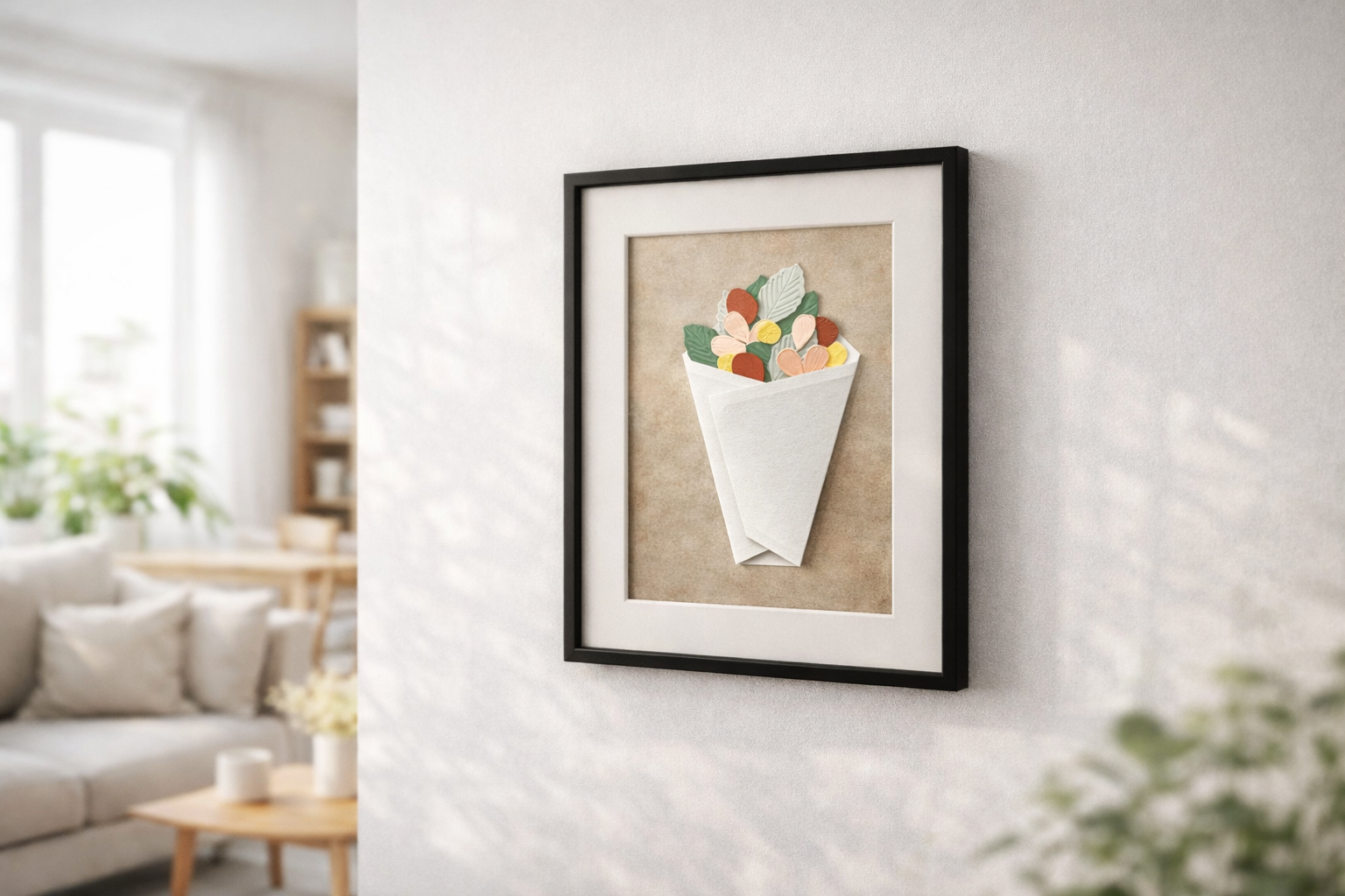 大きな花や葉のシールは粘着面をあえて半分のみに設計し、重ね貼りしても厚みが出すぎないよう工夫しています。花びらの先を少し起こして貼ることで立体感を強調することもでき、つくる人の感性によって表情が変わる点も特徴です。完成したカードはそのまま封筒に入れて送ることができ、贈る前の“つくる時間”そのものが、受け取る相手への想いを深める体験となります。