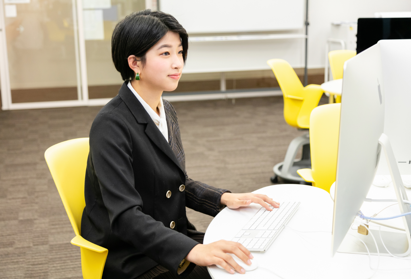 1学年は20名の少人数制です。学生が情報に関する幅広い分野の中から系統的に学べるよう、「社会情報基礎科目」で情報の基礎知識を身につけ、「社会情報実践科目」では企業等との連携で実社会での情報活用方法を学びます。2ステップで情報スキルを身につけ、3年次からは「社会情報展開科目」として既存学部の豊富な学びから自身の興味がある学びを修得。社会学、教育学、心理学などの学びと情報を掛け合わせ、新たな課題発見ができる応用力を磨きます。