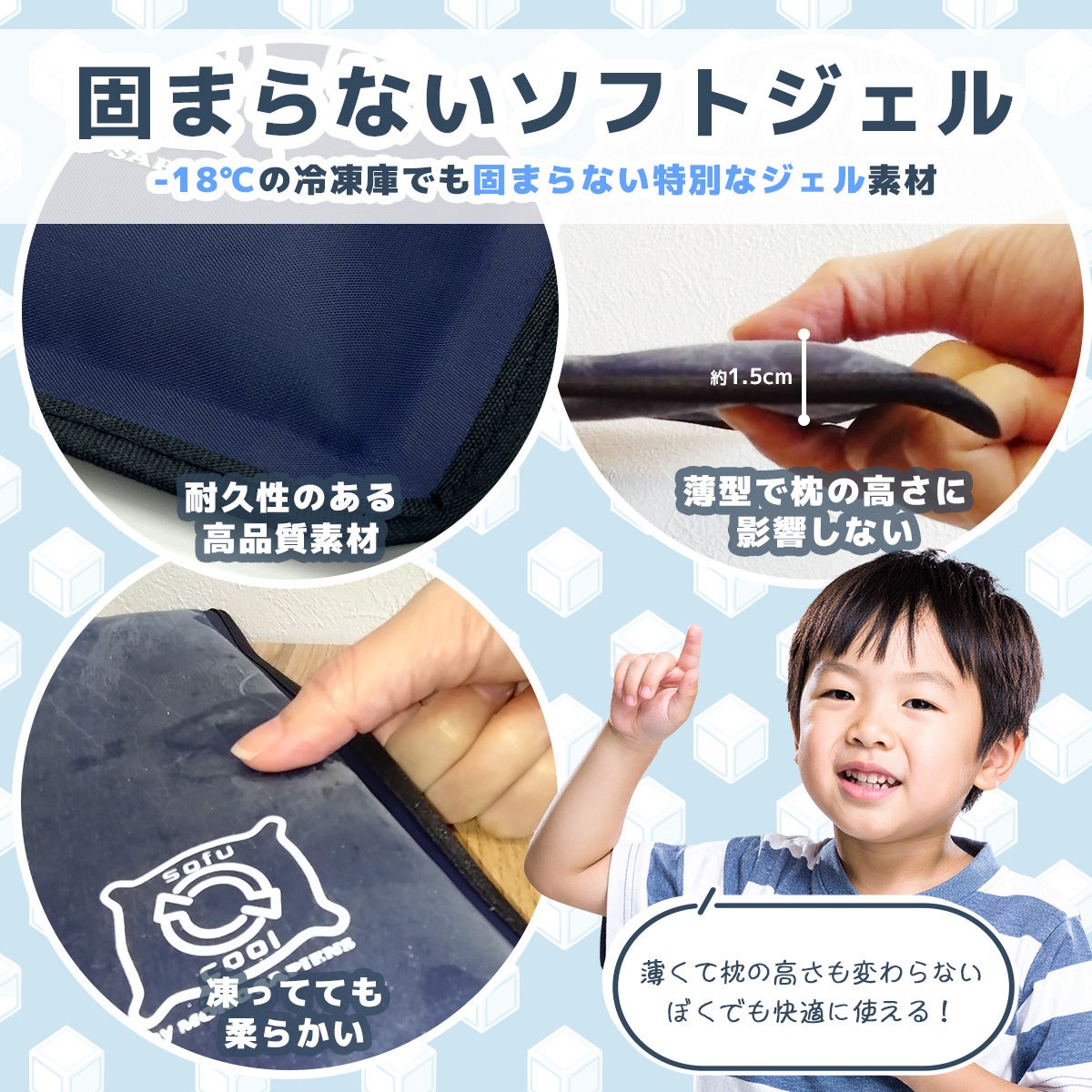 わずか2時間の冷凍でしっかり冷却。固まらない特殊ジェルが肌にやさしくフィットし、広範囲を効率的に冷やします。