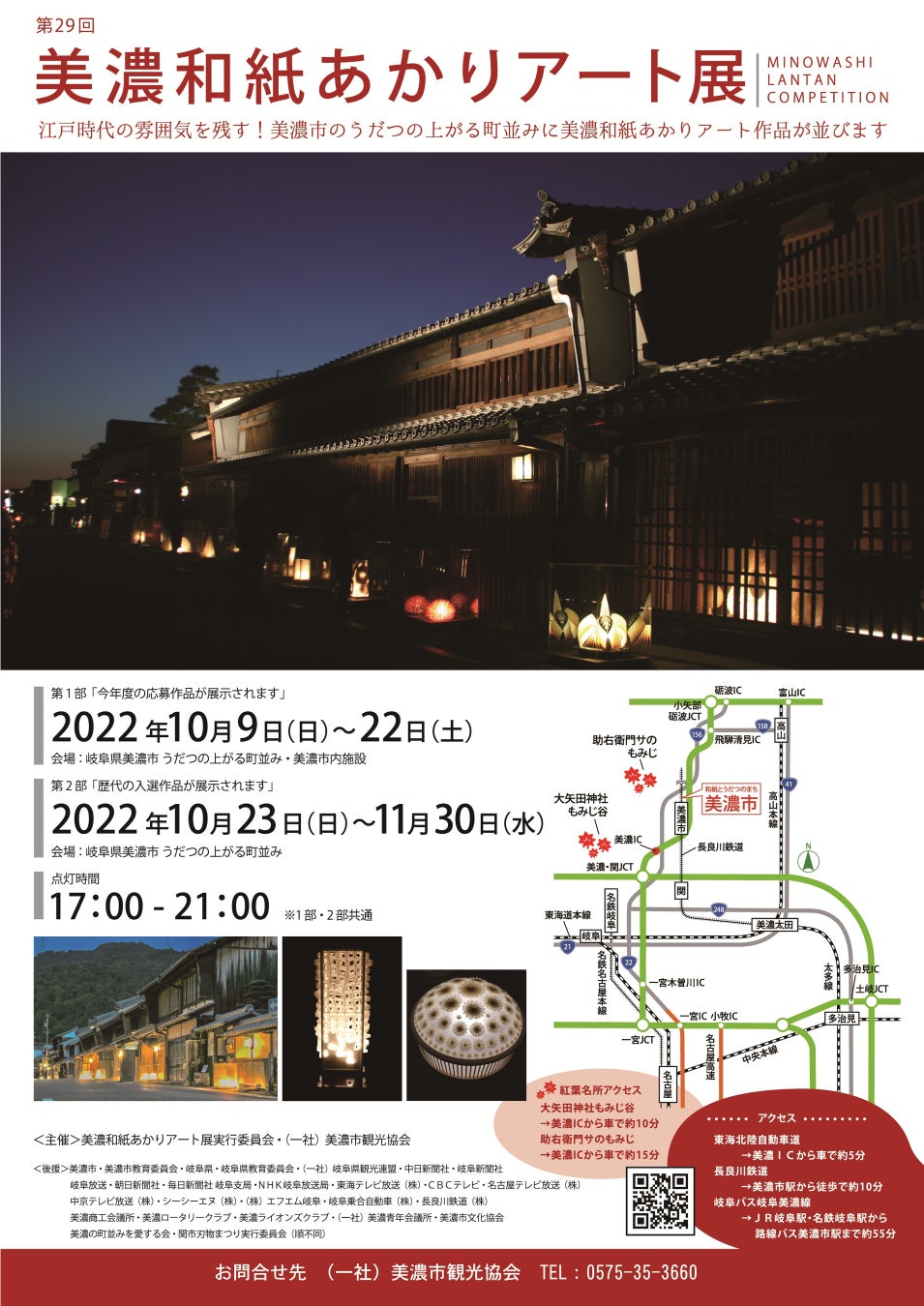▼「美濃和紙あかりアート展」:1300年以上の歴史をもつ「美濃和紙」のアート作品をまちに並べ、歴史あるうだつのまち並みに幻想的に灯される