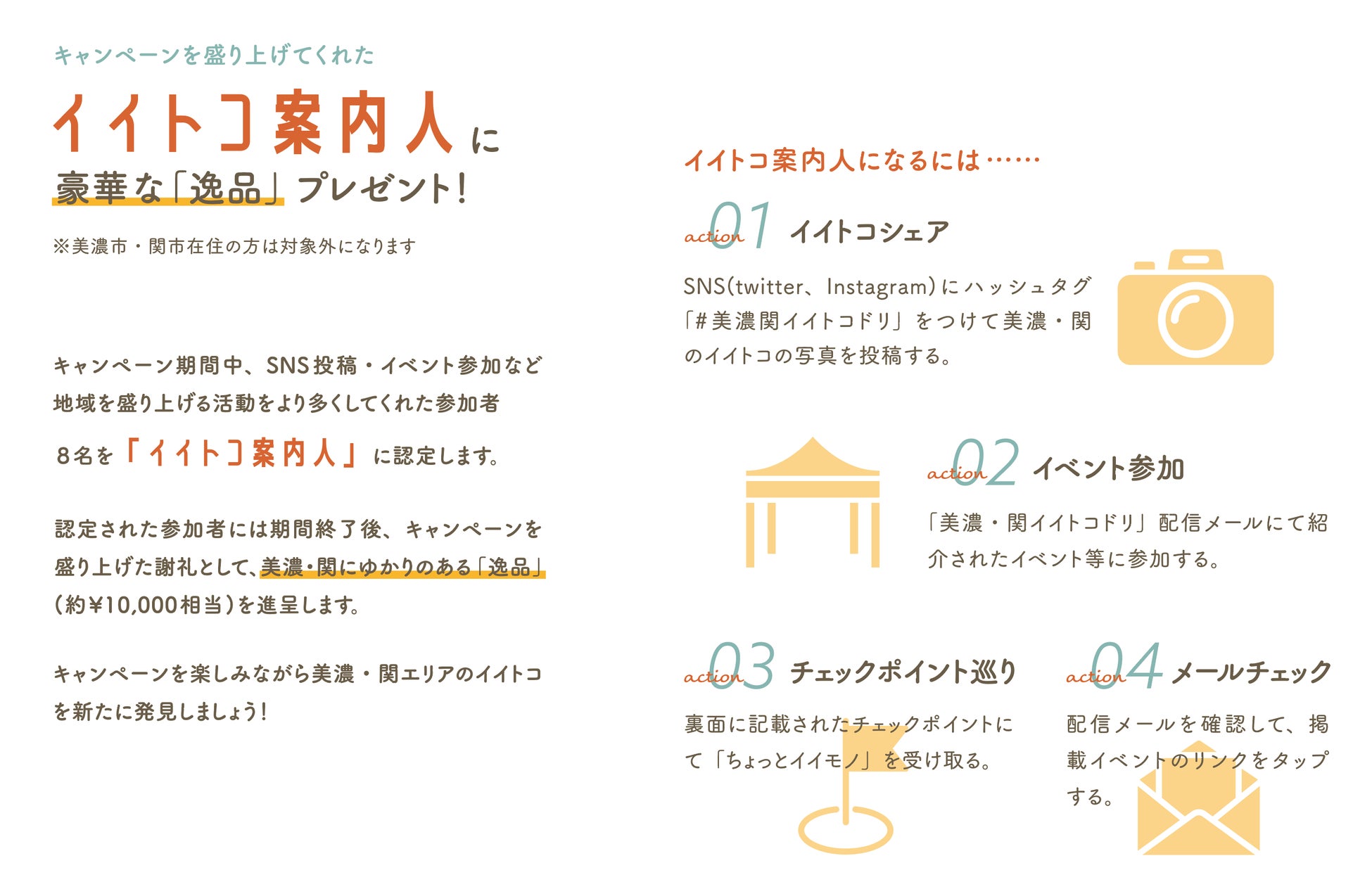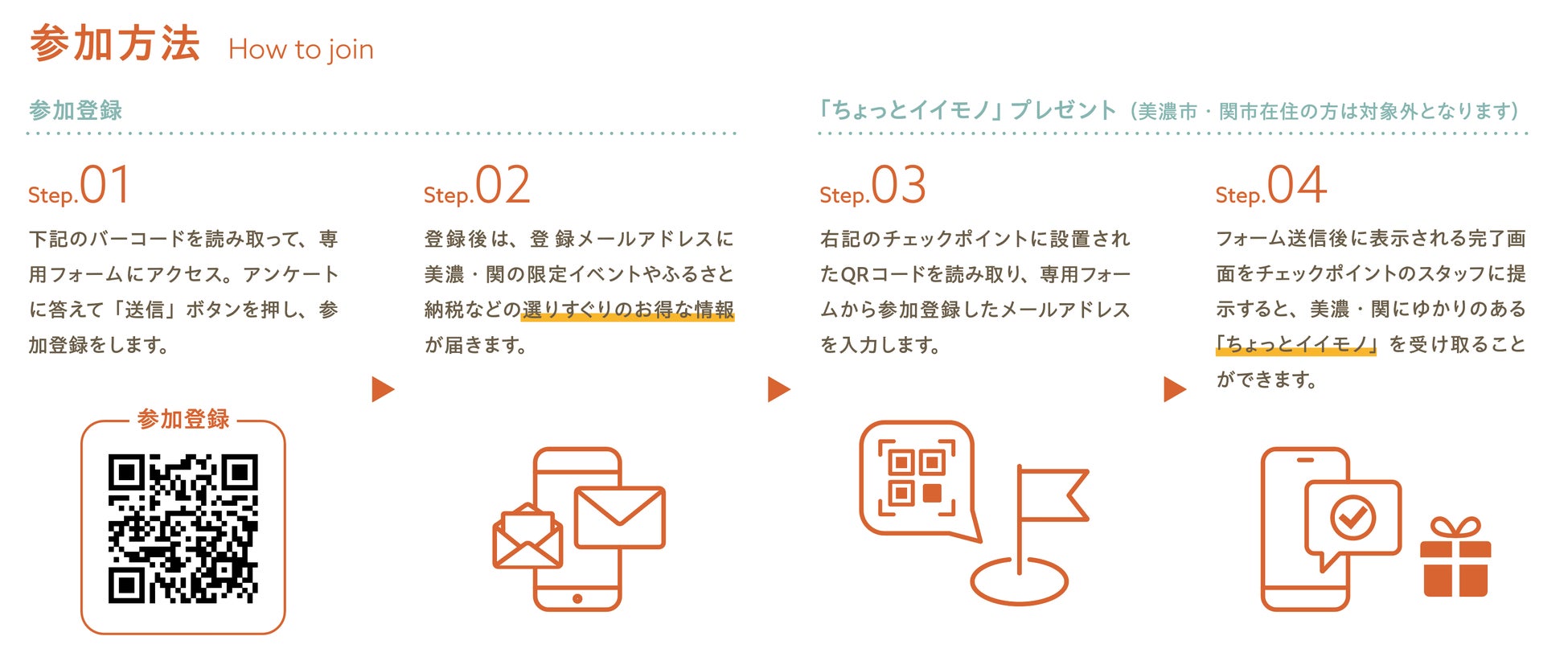 期間中下記3箇所のチェックポイントを訪れると、その場で美濃・関ならではの「ちょっとイイモノ」をプレゼント。