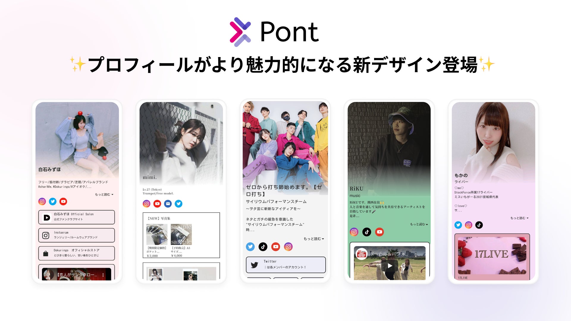 【プロフィールがもっと魅力的に!?】ゼロ打ちや白石みずほなどの人気クリエイター30名が新デザインのページを公開!Pont新デザインリリース第1弾