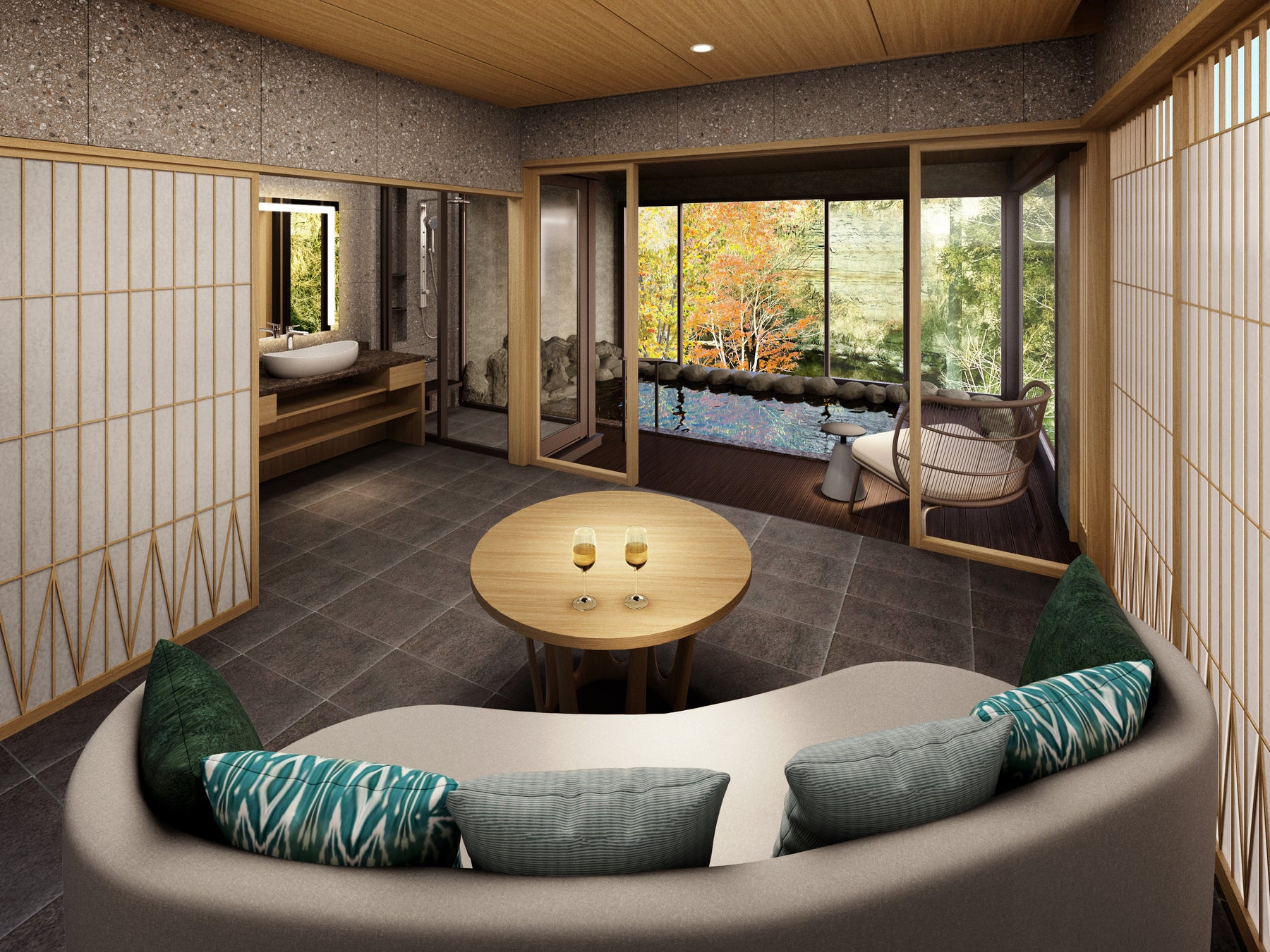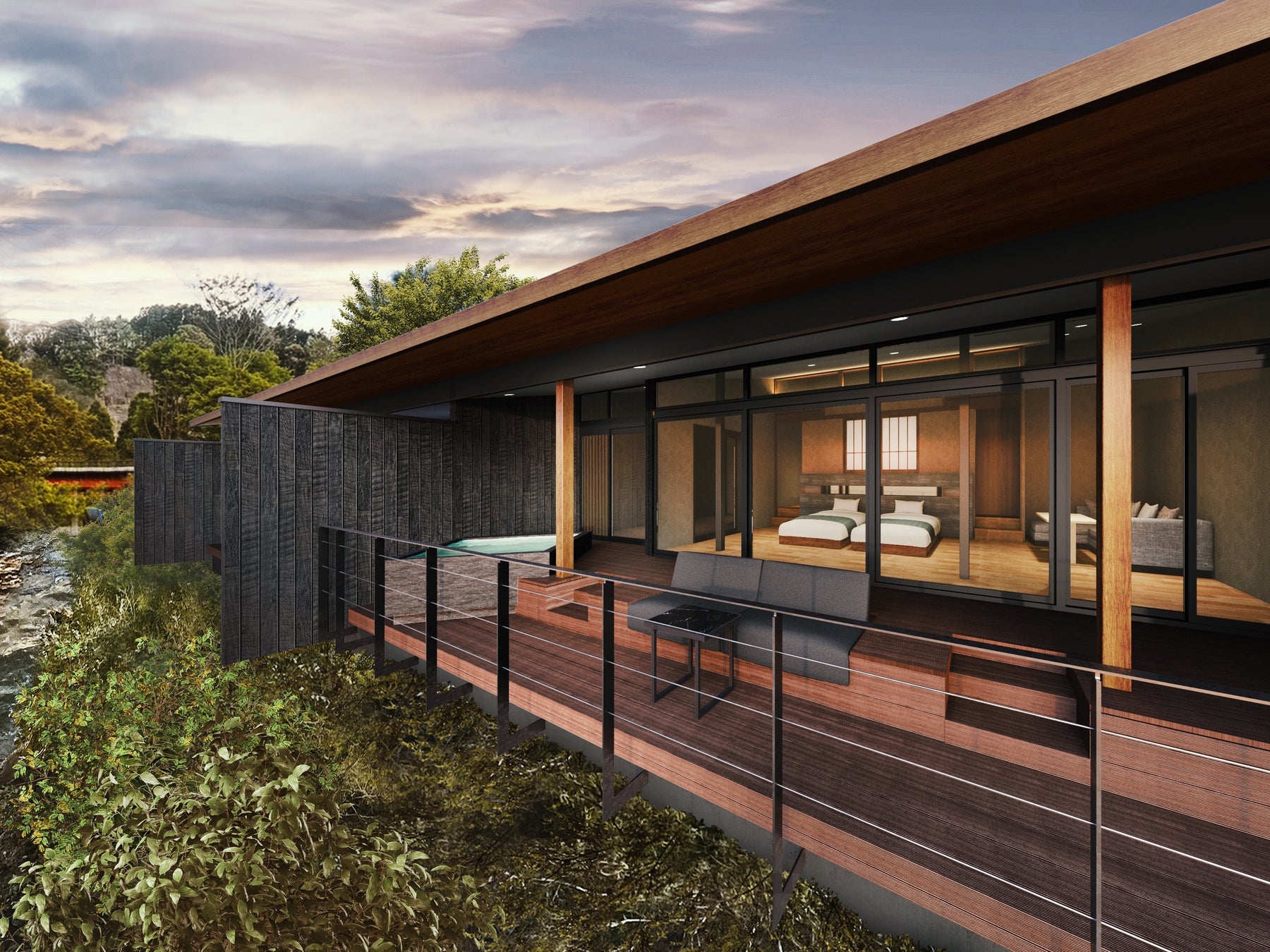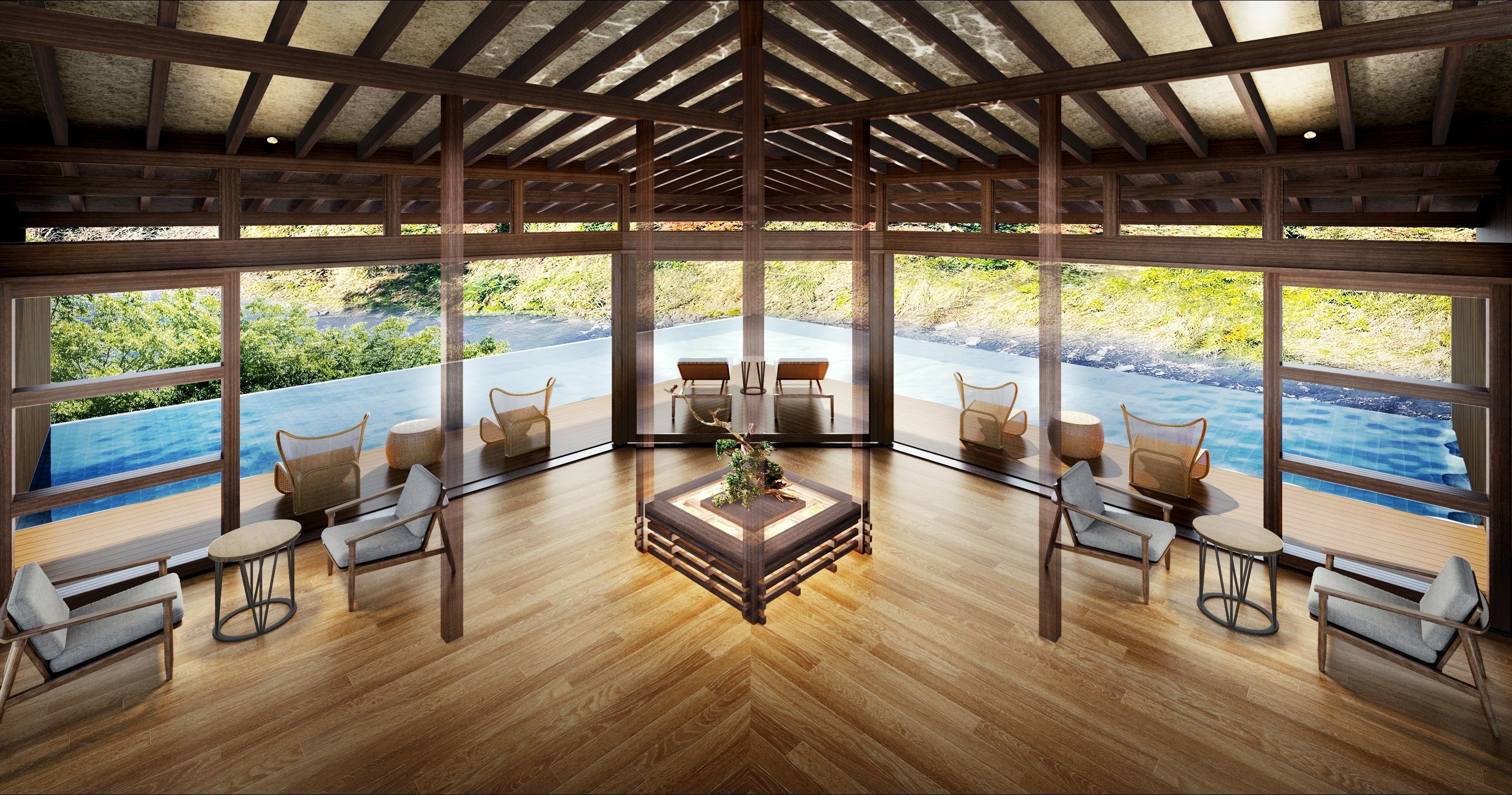 清澄山地を源流とする養老川が数百万年を掛けて形成してきた幽玄なる渓谷の中に溶け込むように作られた、ラグジュアリーな温泉リゾート「SHINRA YORO VALLEY」が2025年3月21日にグランドオープンいたします。