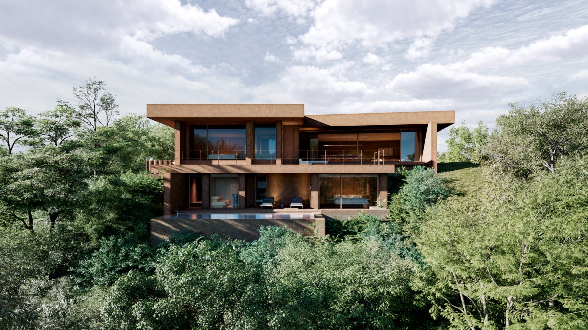 総面積は481.76㎡、3つのベッドルームを備えたフラッグシップ物件です。インフィニティプールと温泉、開放的なサウナや洞窟を思わせる水風呂、大人数で過ごせるリビングダイニングなど、充実した設備が揃います。ペットと過ごせる庭や専用プールを備えた、ペットフレンドリーな設計も特徴の一つです。