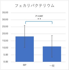 分析結果、IBP群ではフェカリバクテリウム属が一般群に比べて有意に多いことが確認されました(P<0.001)。