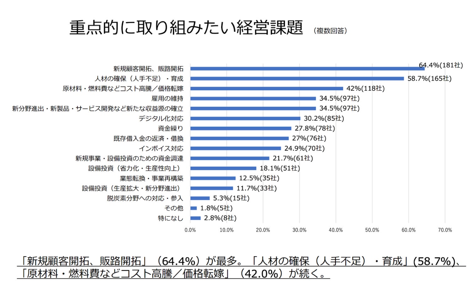 引用;~中堅・中小企業の経営状況・課題に関するアンケート調査~.大阪商工会議所.2023年4月14日,p5,重点的に取り組みたい経営課題,https://www.osaka.cci.or.jp/Chousa_Kenkyuu_Iken/Iken_Youbou/c230421ank.pdf,(2023年8月29日).