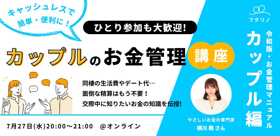 7月27日(水)同棲生活やデートの支払いをスムーズに!【令和版】カップルのお金管理講座