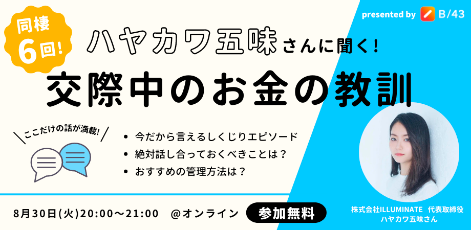 - ■8月30日(火)ハヤカワ五味さんに聞く!同棲6回で悟ったお金の教訓とは?!