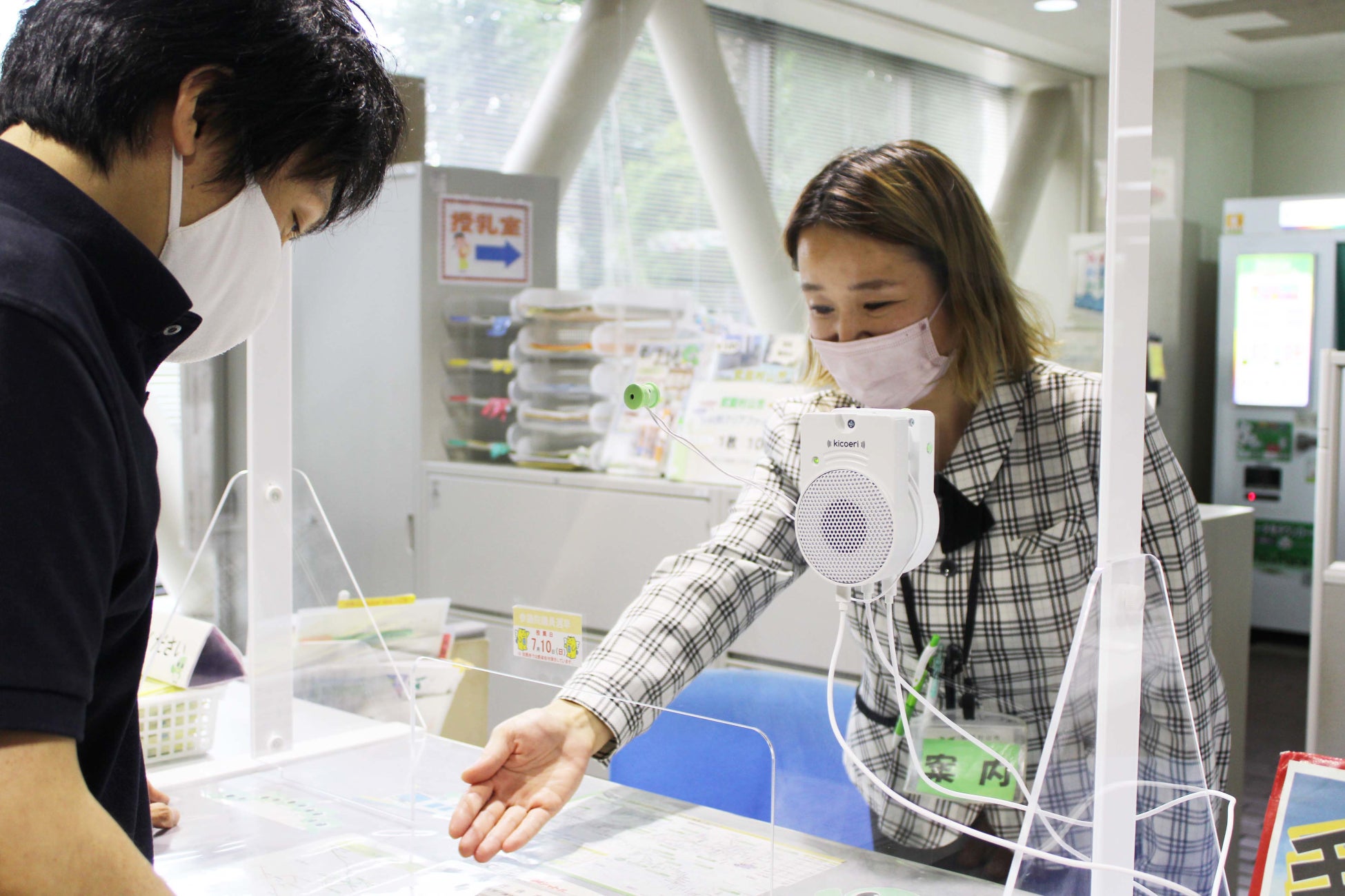- 「アクリルパネル越しだと声が聞き取りづらい」との声が市民の方々や職員から多く寄せられたことから、会話支援装置の導入を決定しました。
