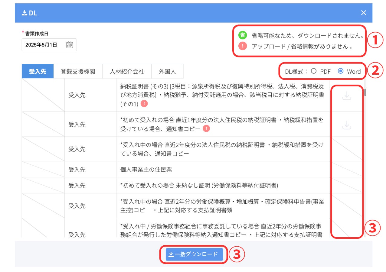 ③一括または個別でDL可能。