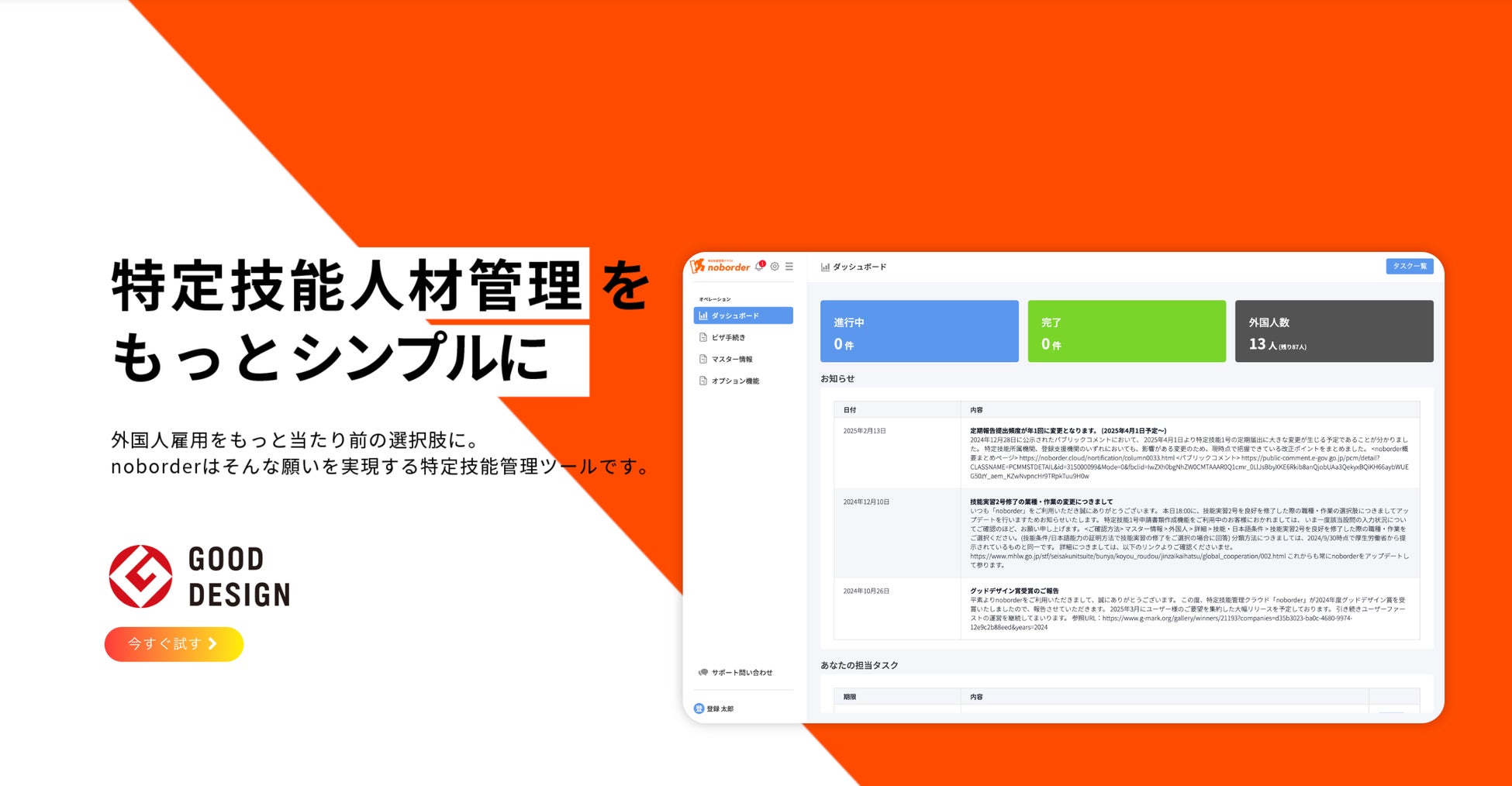 特定技能管理クラウド「noborder」、2025年4月1日運用要領に対応した新バージョンをリリース