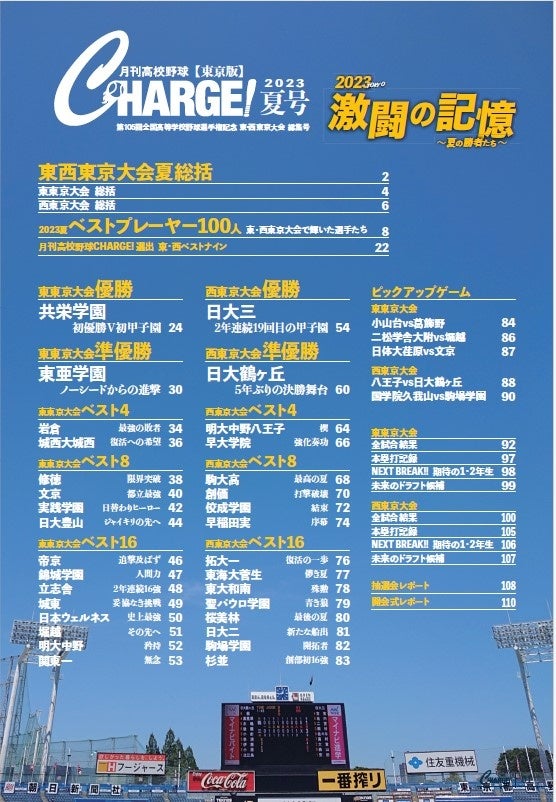 【月刊高校野球CHARGE! 第105回全国高等学校野球選手権記念 東・西東京大会 総集号】が全国書店(一部を除く)、CHARGE公式サイト、Amazon、都内セブンイレブン(一部を除く)などで発売!
