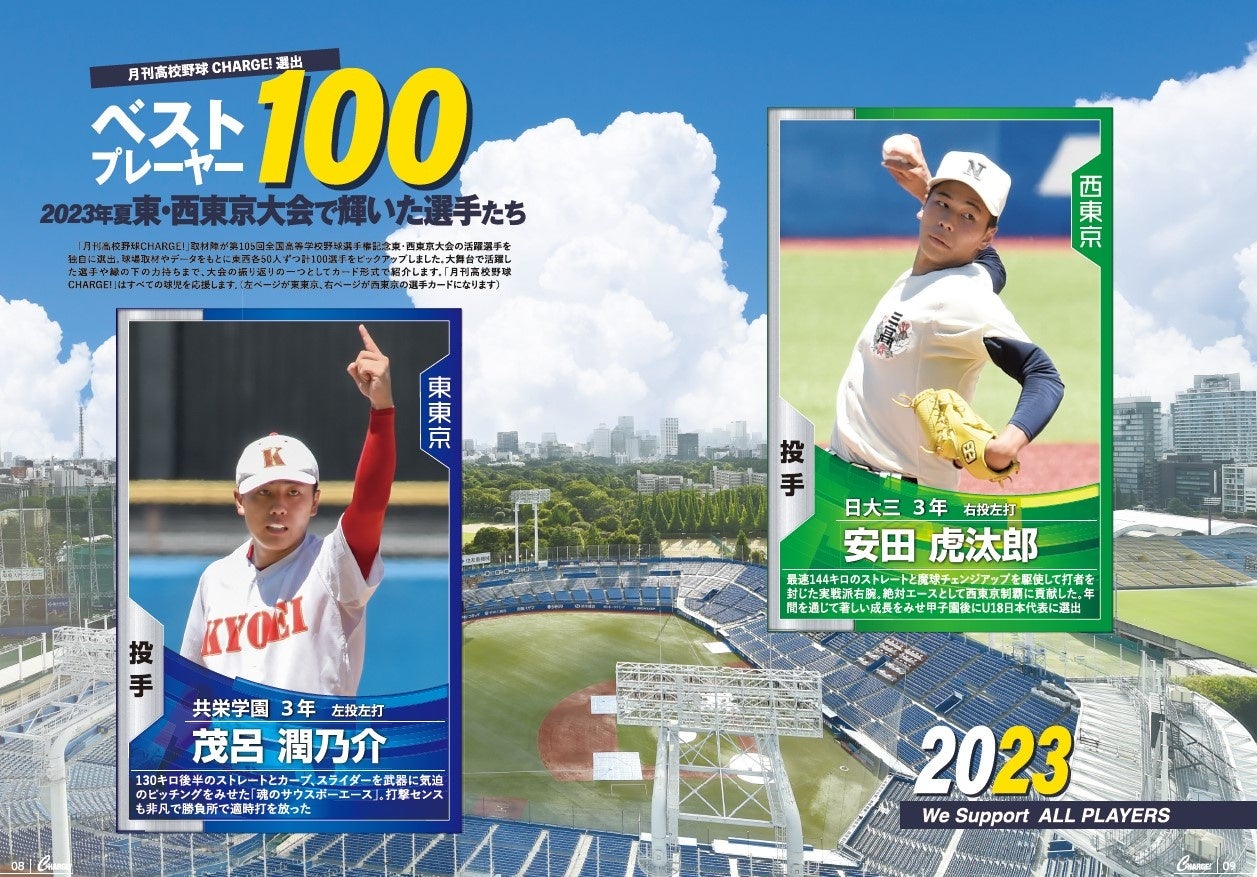 CHARGE!取材陣が第105回全国高等学校野球選手権記念東・西東京大会の活躍選手「ベストプレイヤー100」を独自に選出。球場取材やデータをもとに東西各50人ずつ計100人をピックアップ。今夏大活躍した選手から、取材の印象に残ったプレーヤー、縁の下の力持ちまで、カードスタイルで紹介しています。