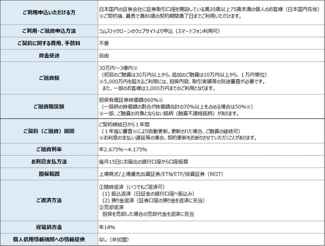 - 日証金のオンライン型証券担保ローン《コムストックローン》とは