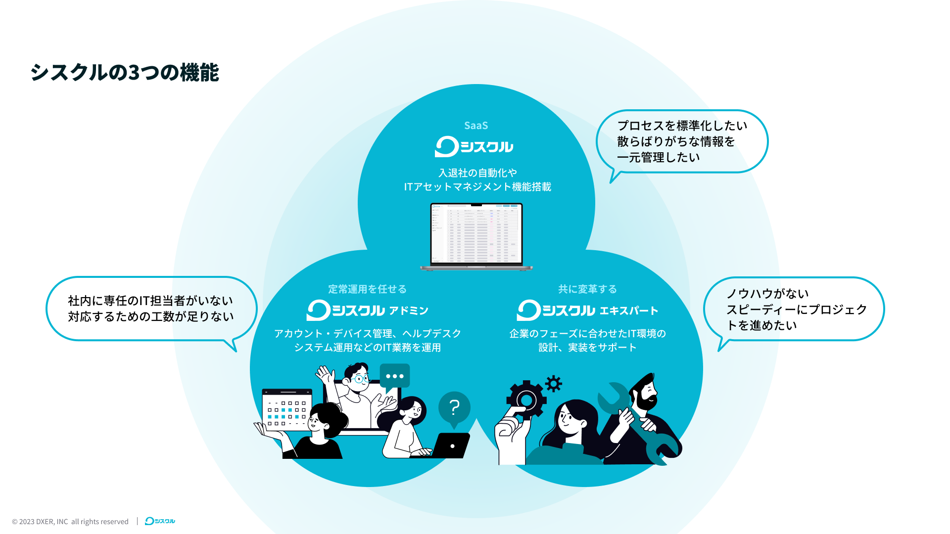 シスクルは、3つの機能をご利用いただく事により、お客様の情シス担当者そのものになれます。