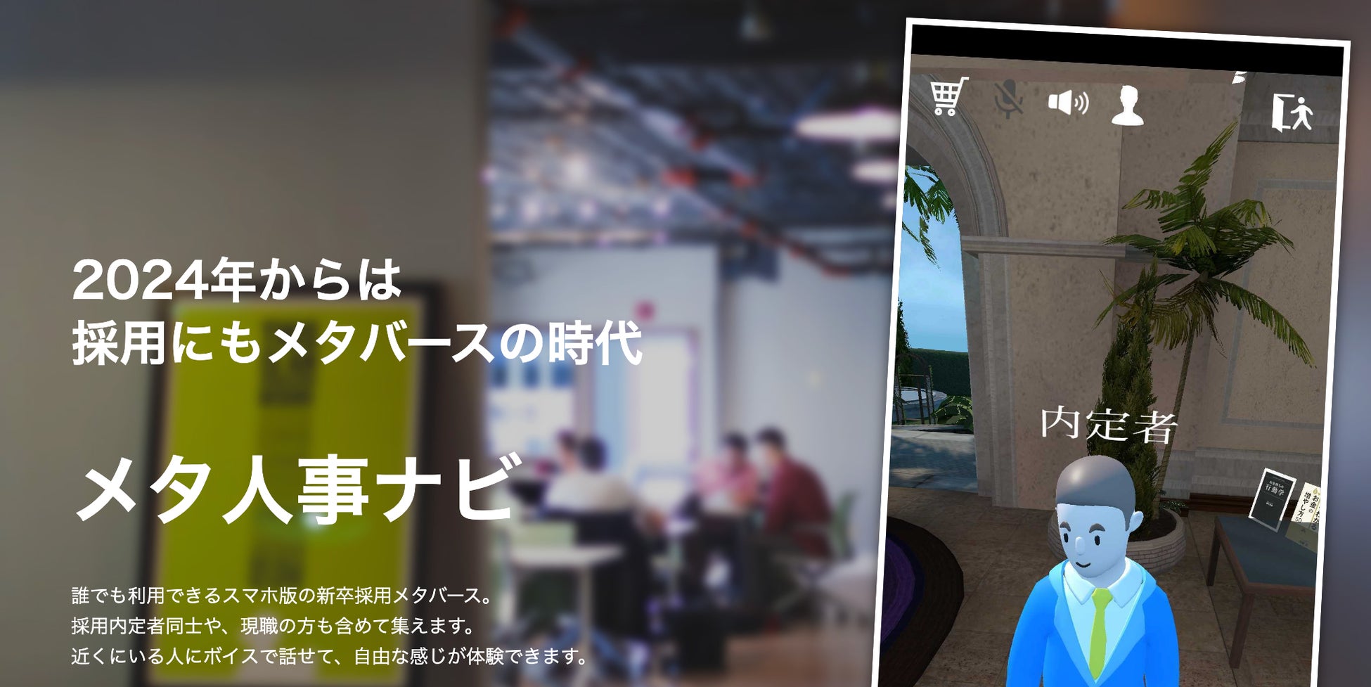 本サービスはスマートフォン版のメタバース空間ですので、多くの就職希望者が気軽に参加することができます。