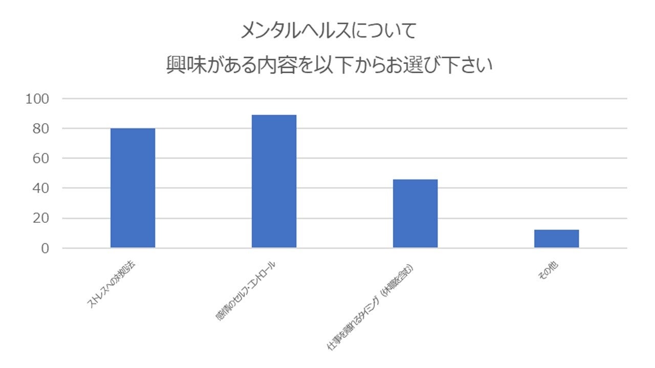 当日参加者112名に「メンタルヘルスについて興味がある内容を以下からお選び下さい」(複数回答可)でアンケートをとった結果