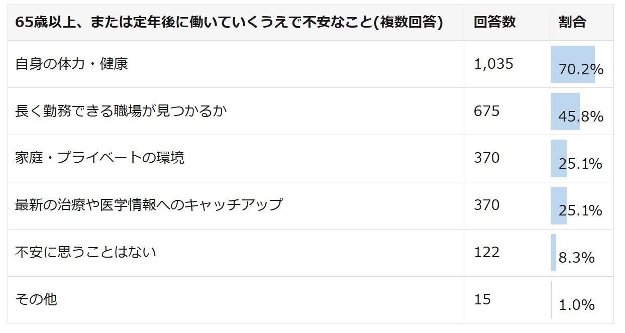 <医師1,871名調査>医師の定年「65歳」が主流、約8割が65歳以降も就労意欲あり セカンドキャリアには体力や職場探しの不安も