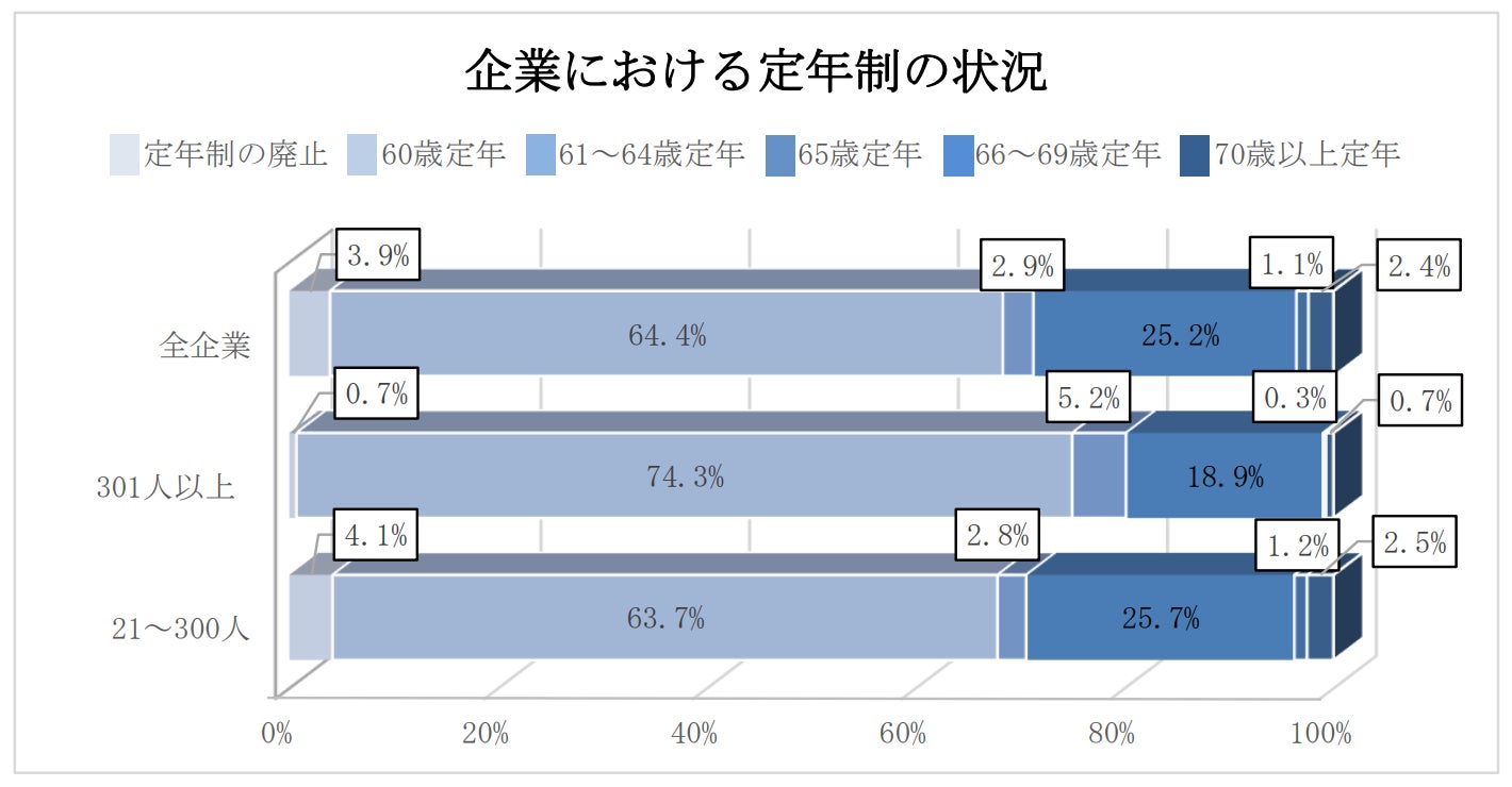 一般企業では「60歳」が64.4%(厚生労働省「高年齢者雇用状況等報告」、2024年6月時点)